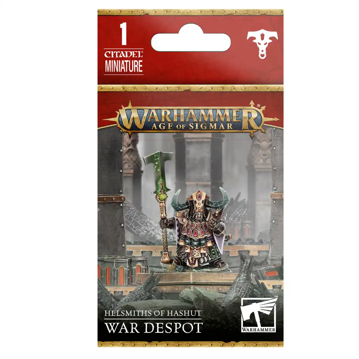 Aus diesem mehrteiligen Kunststoffbausatz kannst du einen Kriegsdespoten bauen, einen Kriegeradligen für deine Armeen der Helschmiede des Hashut in Partien von Warhammer Age of Sigmar. Sie sind bewaffnet mit einer Dämonenflammengleve, einer brutalen Waffe mit einem darin eingeschlossenen Dämonen als Kraftquelle, und tragen reich mit Runen und Edelsteinen verzierte Rüstung. Diese grausigen Herren sind ideale Anführer für hashutitische Truppen und beflügeln nahe Krieger zu härterem Kampf, den sie selbst auch nicht scheuen.